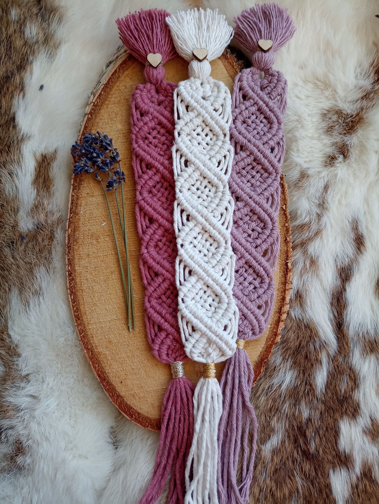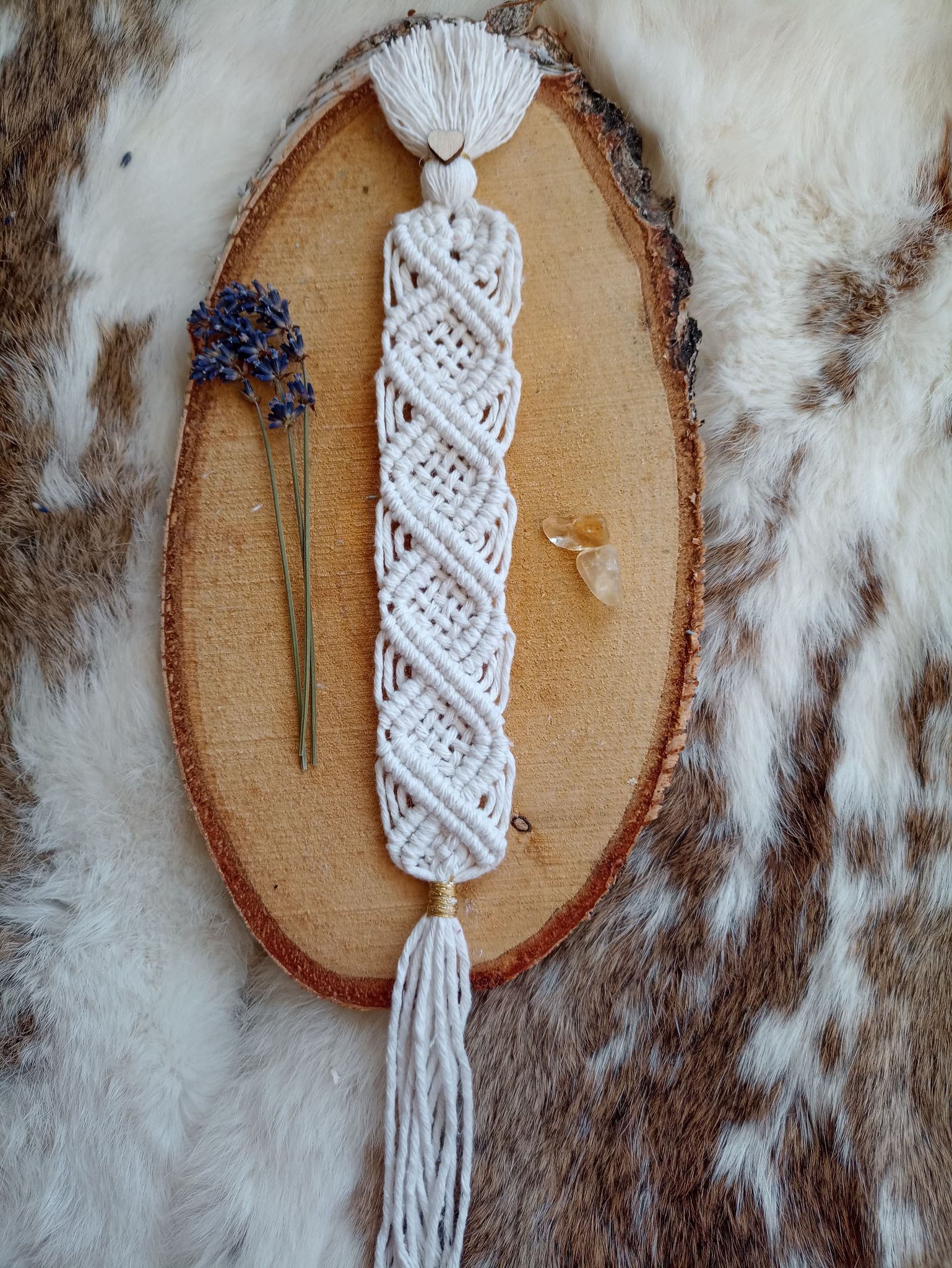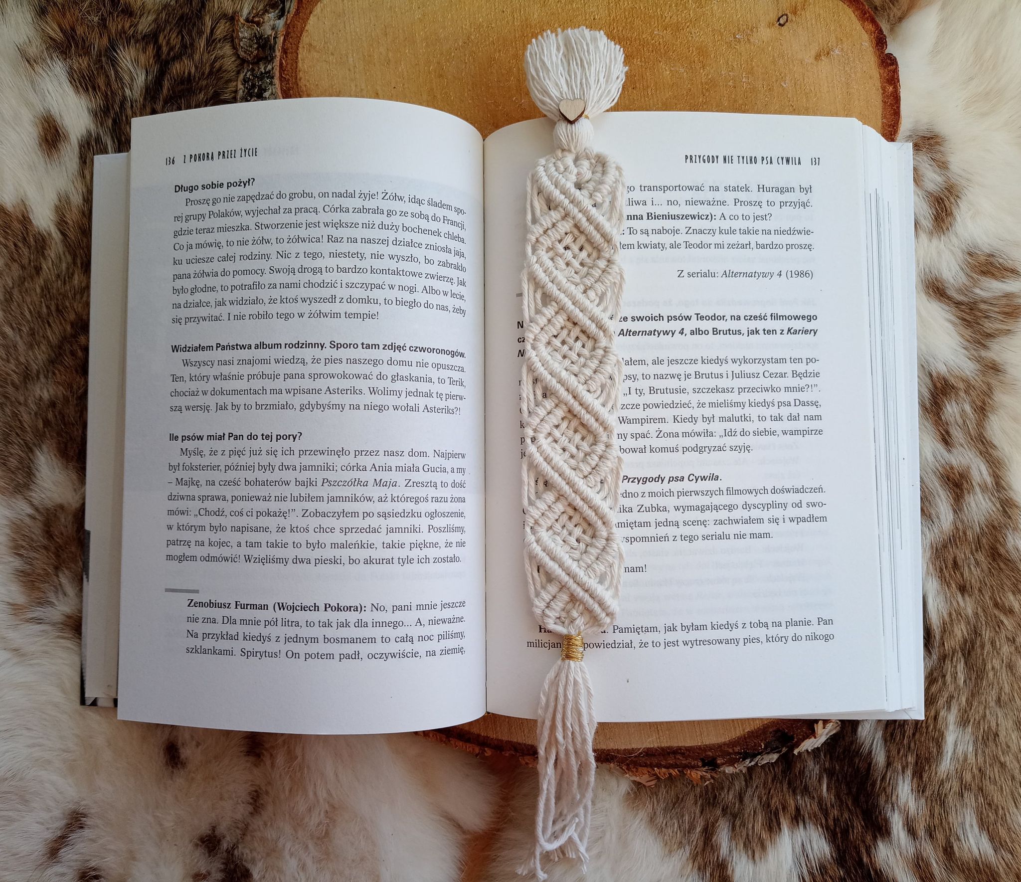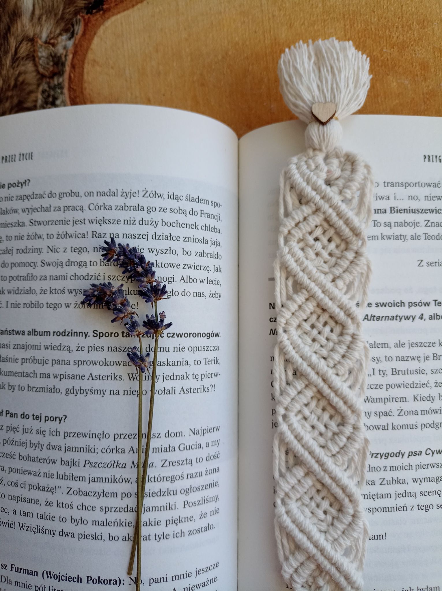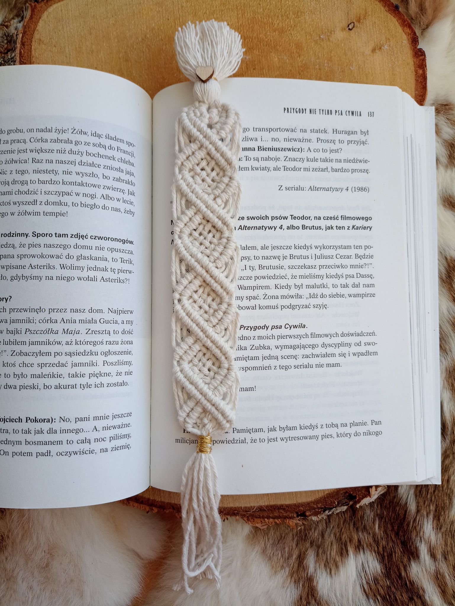 Zakładka została wykonana metodą makramy z wielką starannością i dbałością o każdy szczegół.